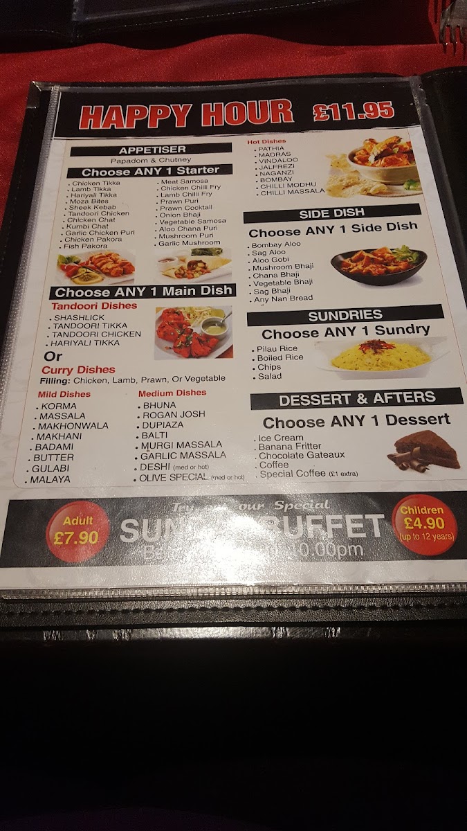 1x Poppadom & Chutney, 1x Starter, 1x Curry (Meat Options - Chicken/ Lamb/Prawn/Paneer/Veg/Chicken Tikka. Extra £3 for King Prawn) 1x Pilau Rice or Chips (extra 75p for other rice flavours) & 1x Nan (extra 75p for other flavoured nan).